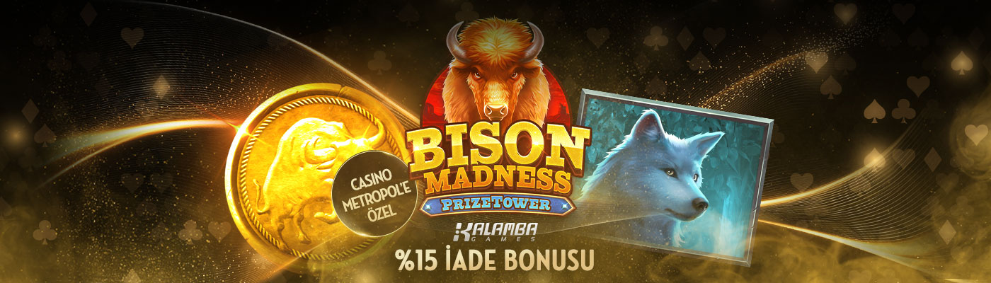 • İade Bonusu, kullanıcının kampanyaya katıldığı andan yukarıda belirtilen kampanya bitiş tarihine kadar Bison Madness PrizeTower slotunda oluşan net kayıpların %15 oranı olarak hesaplanır.